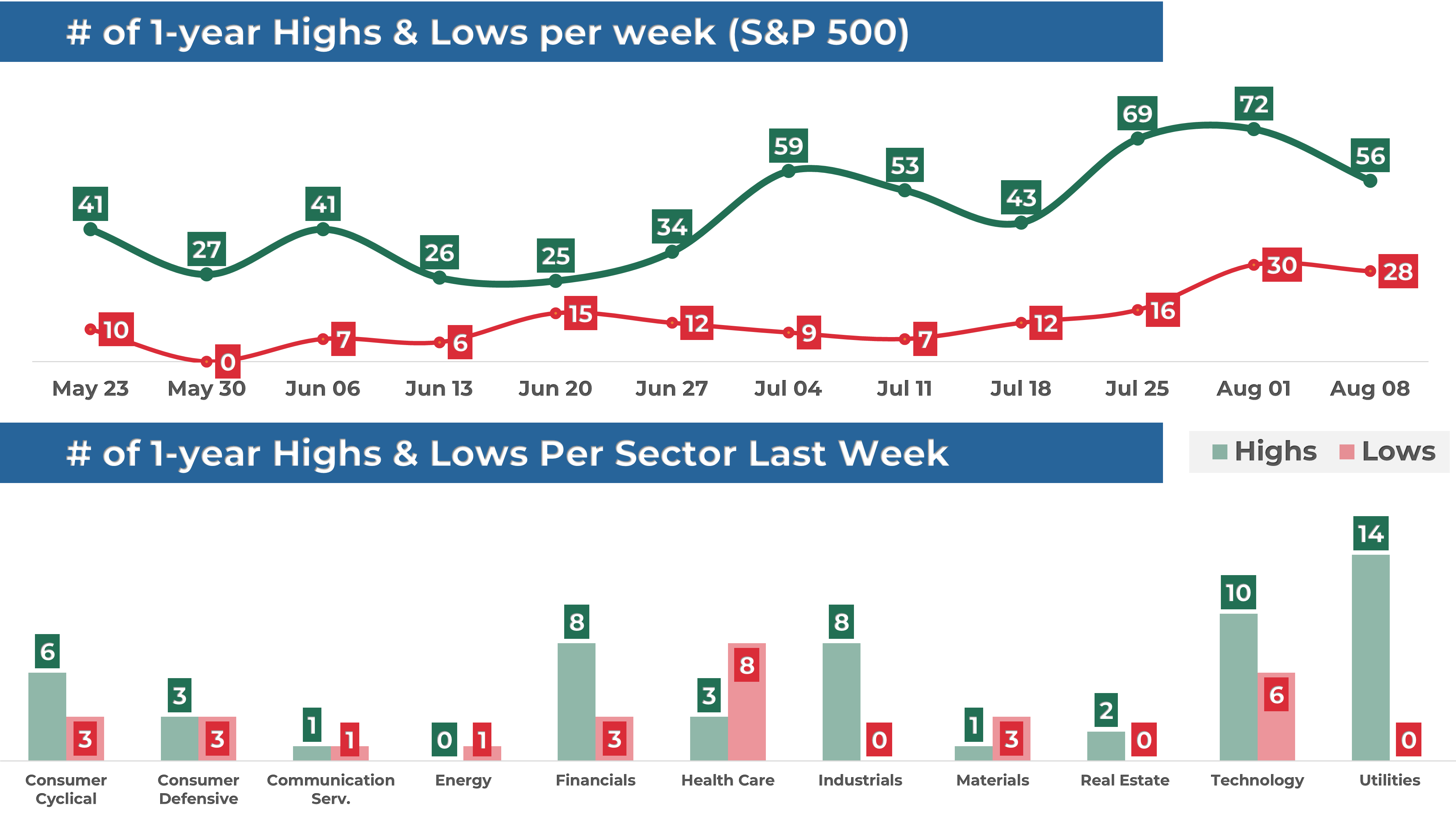 In addition, 56 stocks within the S&P 500 reached a new 52-week high, while 28 stocks set new lows. The majority of this week’s highs came from the Utilities sector.