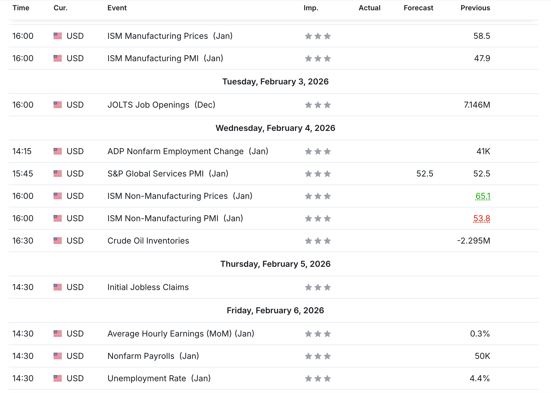 1. Economic Calendar
