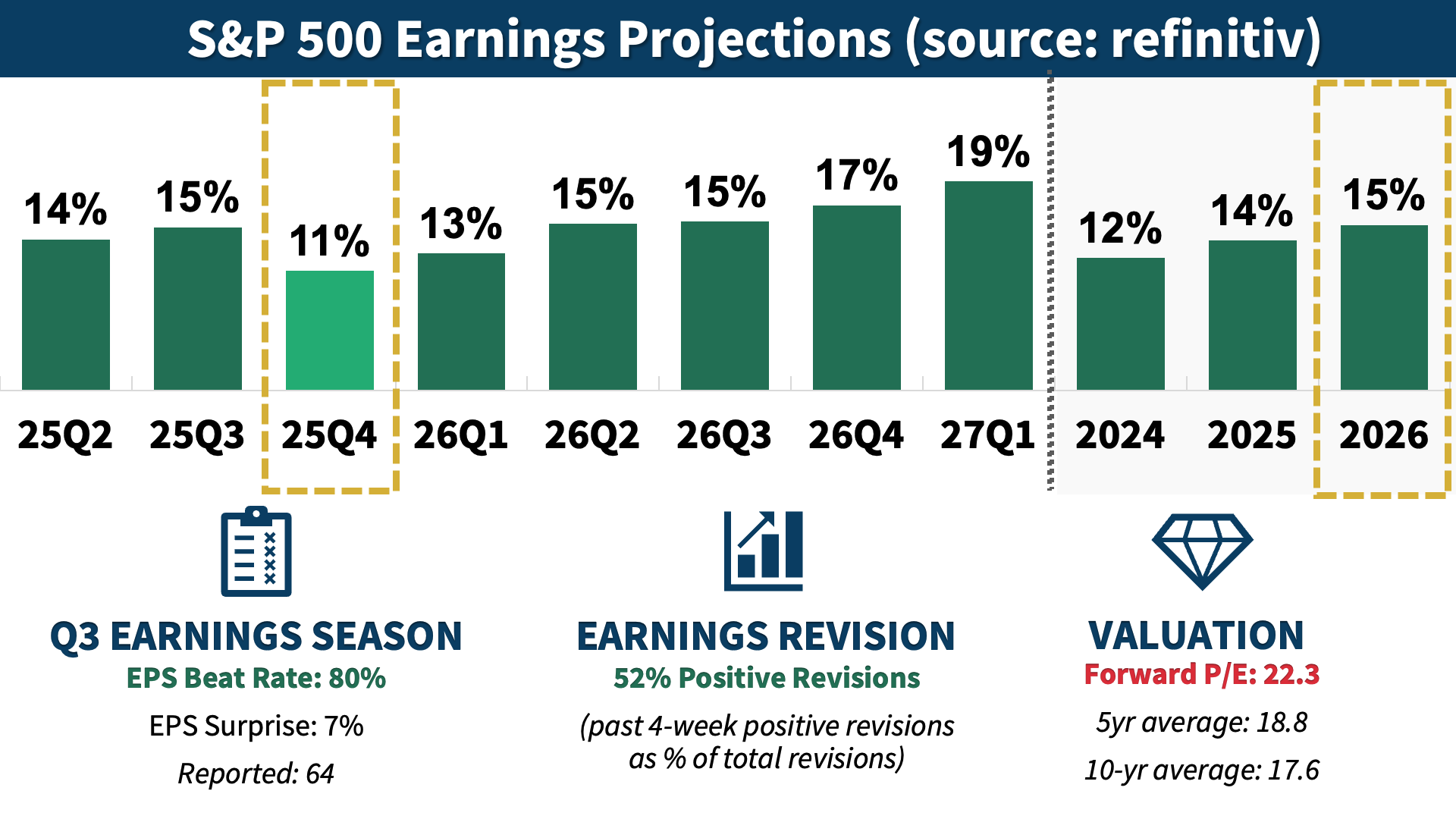 2026 Full-Year Outlook: Consensus forecasts +15% growth, largely above the 10-year average of +9 %.