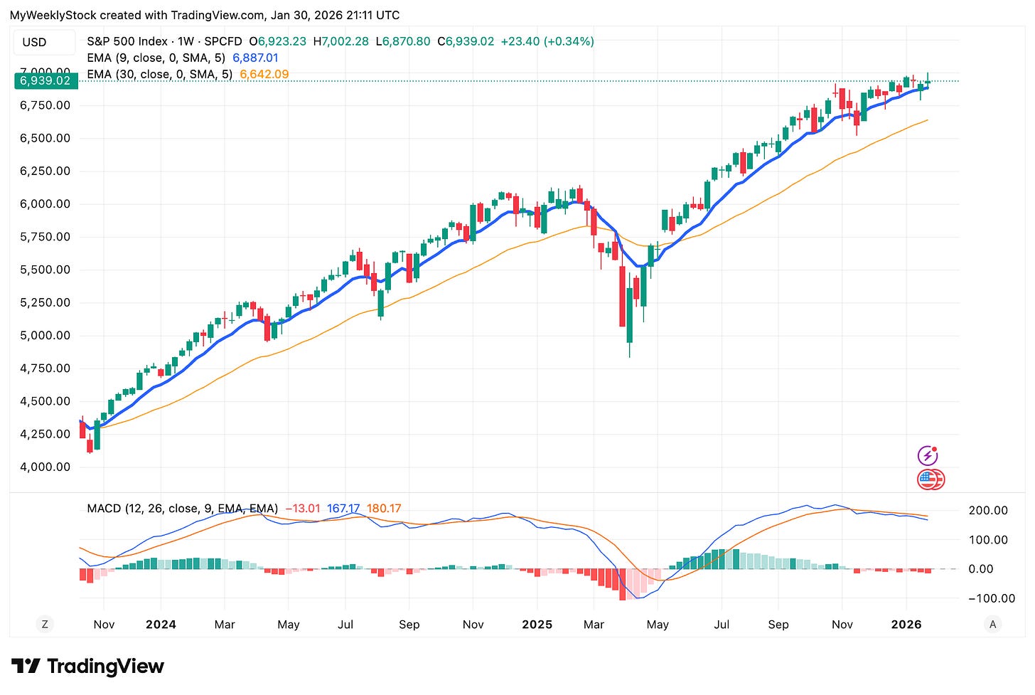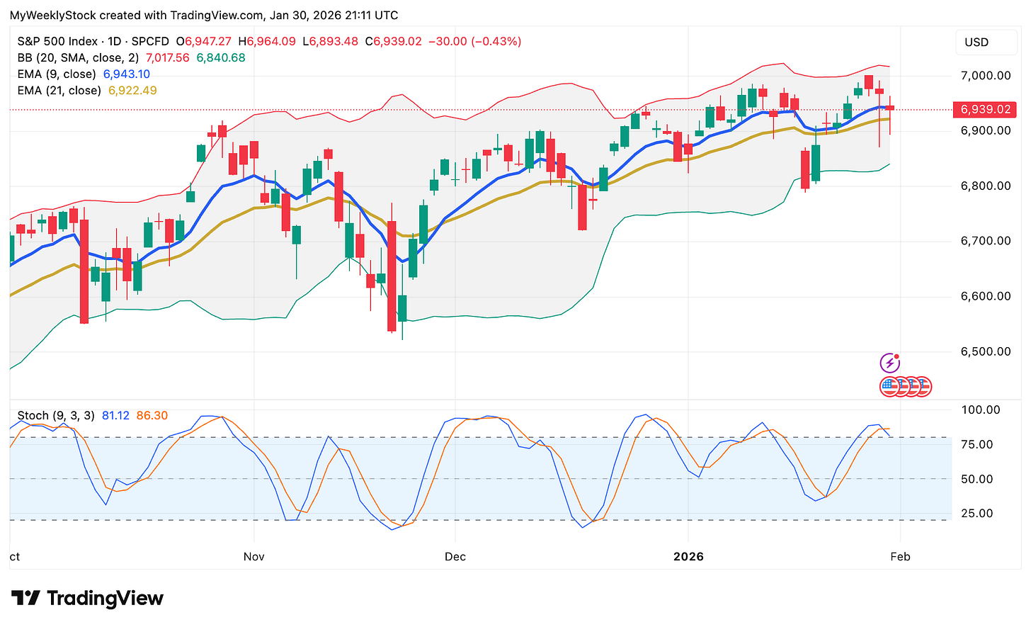 Weekly Market Recap (Jan 26-30): S&P 500 Rejected at 7,000, but Holds Important Trend Line. What Comes Next?
