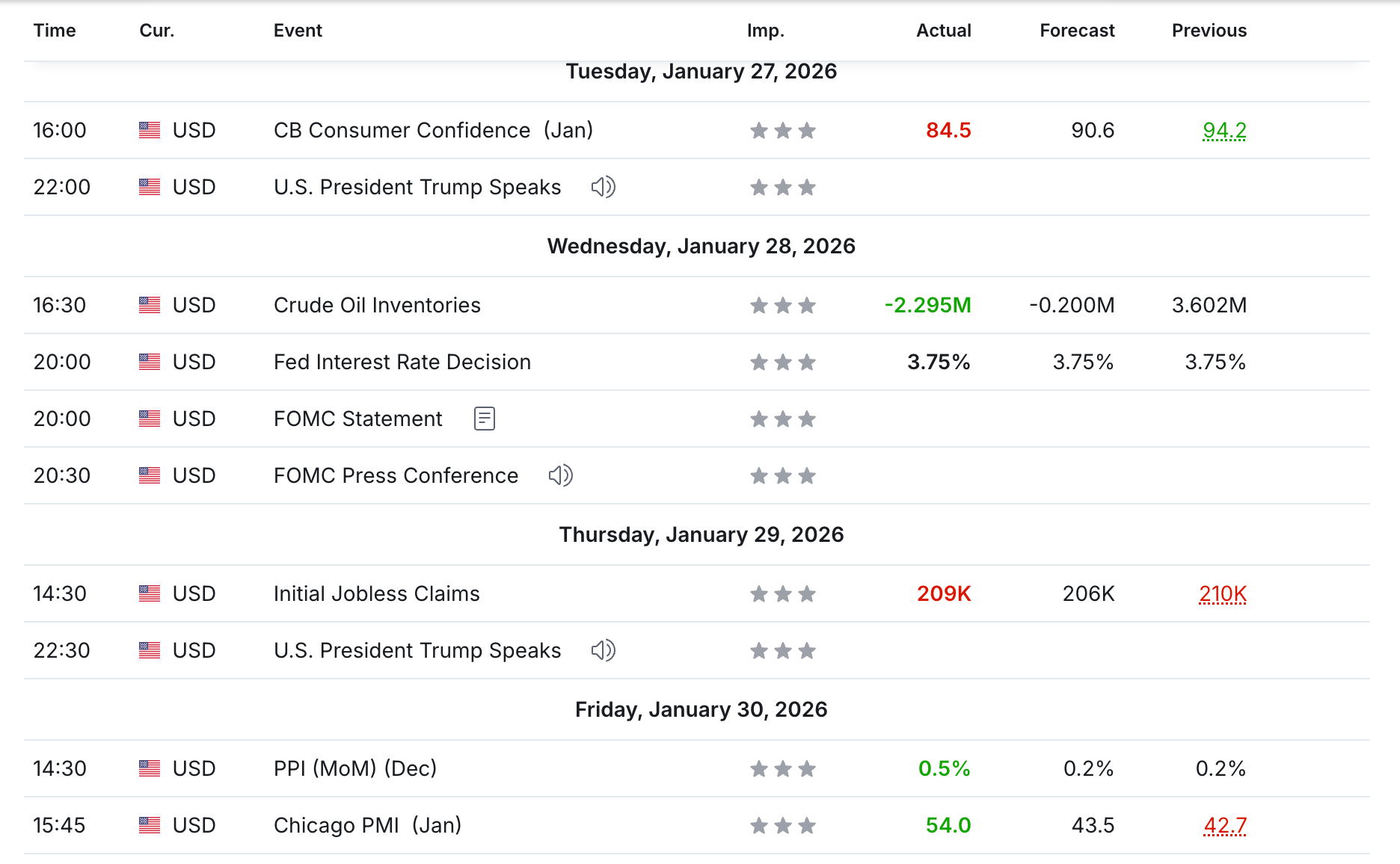 Fed Interest Rate Decision: Actual 3.75% vs Forecast 3.75% vs Previous 3.75%