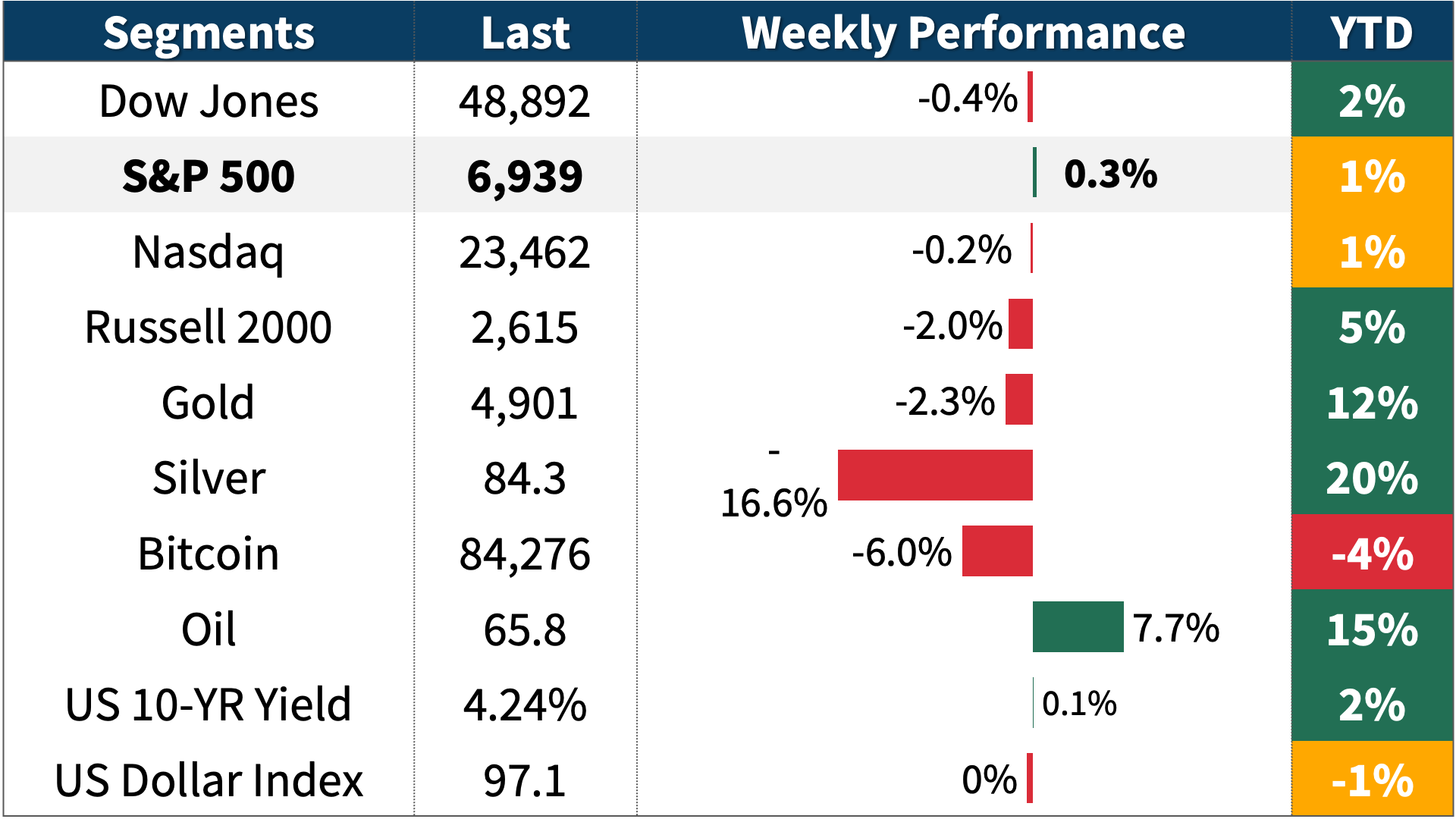 3. Earnings Update: 166 S&P 500 companies reported, with 76% topping estimates. Q4 earnings growth: +11%, full-year 2026 outlook: +15%.
